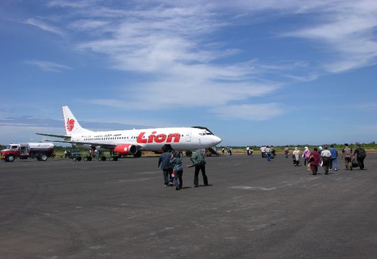Der Flughafen Bengkulus liegt 14 km südlich der Stadt und war mit dem Fahrrad bequem in 45 min zu erreichen. Ich hatte mein Ticket nach Jakarta vor weniger als einer Woche in Padang gekauft, aber selbst bei relativ kurzfristigen Buchungen ist das Fliegen innerhalb Indonesiens aufgrund einer Vielzahl von Billigairlines sehr günstig. Der 50 minütige Flug nach Jakarta mit Lion Air kostete 329.000 Rp, das Fahrrad wurde anstands- und kostenlos mitgenommen. Überhaupt verlief alles sehr glatt, der Flieger war pünktlich, das Flugzeug war recht neu und machte einen guten Eindruck. Ganz anders als die Stories, die man über indonesische Airlines immer wieder liest, vermuten lassen würden. Einziges Ärgernis war wiederum, wie immer in Asien, dass die Luft aus den Reifen gelassen wurde, ansonsten kam das Rad in einwandfreiem Zustand in Jakarta an. Das ich keine Pumpe dabei habe, musste ich erst einmal vom Domestic Terminal 3 zwanzig Minuten in Richtung Terminal 1 laufen, wo es an der Straße glücklicherweise eine Werkstatt gab, die mir die Reifen wieder aufpumpten.