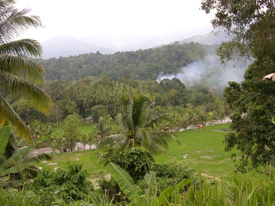 Eine landschaftlich sehr schöne Strecke heute, durch einsame Dschungeltäler, oftmals mit mäandernden Flüssen als Wegbegleiter, teilweise eingebettet in grün schimmernde Reisfelder.