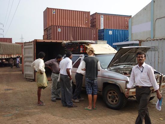 Zielsicher steuerten wir den uns empfohlenen Agenten an um alles noetige in die Wege zu leiten. An und fuer sich war es nicht schwer unsere Fracht aus dem Hafen zu bekommen, doch als wir erfuhren was es kostet viel uns erstmal die Kinnlade herunter. In Singapur kostete uns die ganze Aktion 50 Euro, denn man konnte selbst in den Hafen gehen und alles erledigen. So dachten wir, dass es hier in Indien noch viel einfacher sein sollte da Arbeitkraefte hier billiger sind und alles nicht so sehr organiesiert ist wie
