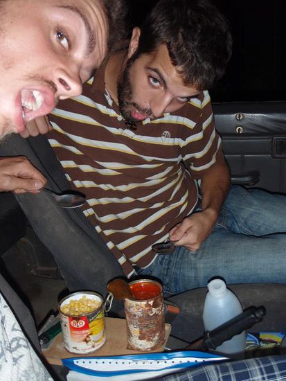 Nach einer 15 minuetigen Zollkontrolle auf Waffen, Drogen und anderm Illegalem wurden wir gebeten am Eingang zu warten. Eine halbe Ewigkeit spaeter stellte sich heraus, dass noch ein Dokument fehlte. Aber ein netter Beamter versicherte uns, dass alles in 5 min erledigt sei. Haha Witz des Tages. Aus den 5 Minuten wurden 2 Stunden. Nun gab es erstmal (nach 11 Stunden hungern) was zu kauen aus unserer Vorratsbox. Auf dem Menu standen australische Bohnen und eine Dose Mais.