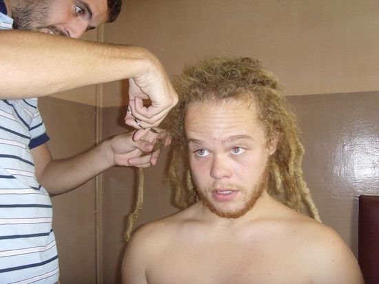 Am naechsten Morgen konnte, nach dem Abschluss einer Autoversicherung (bei The New India Assurance Company), unser Trip endlich losgehen. Nach diesem ganzen Stress fiehlen Moritz gleich mal alle Haare aus.
