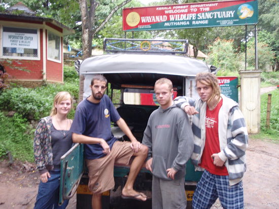 Wir waren ganz heiss darauf die indische Wildniss zu erleben. Unser naechster Anlaufpunkt war die Waynard Wildlife Sanctionary. Die ersten Tiere, die uns dort begegneten, waren wieder einmal die frechen Affen. Einer von ihnen wollte uns gleich, vom Autodach aus, anpinkeln. Unsere Wahl fiel auf eine 45min Jeep Safari.