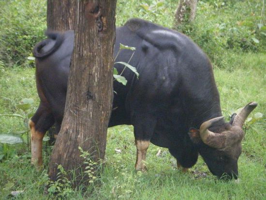 Der naechste Anlaufpunkt war gleich wieder ein Wildlife Park (Bandipur National Park). Und wieder eine Safari, aber dieses mal mit einem Bus. In den 45 Minuten erspaehten wir ein etwa 2000 kg schweres Bison. Auch Pfauen, Rehe, Wildschweine und Affen waren wieder mit von der Partie.