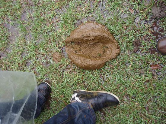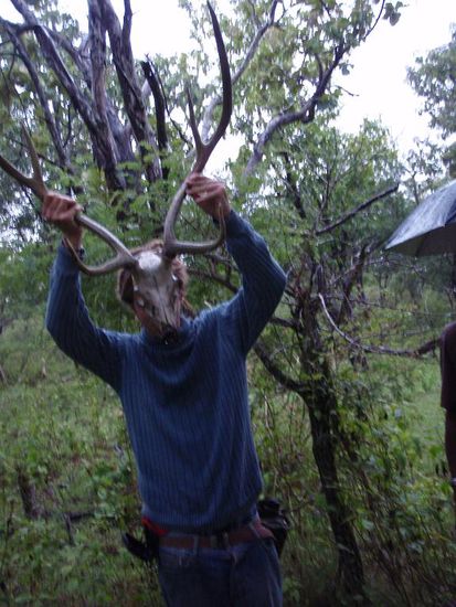 Es regnete die ganze Zeit. Ausser abgenargter Knochen und Elefantendung ( der mit dem Fuss auf Konsistenz und Waerme untersucht wurde) sahen wir anfangs nichts. Doch uns wurde aufgrund des warmen Dunges versichert, dass Elefanten in der Naehe seien und wir mit Vorsichtig handeln sollten.