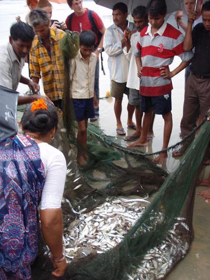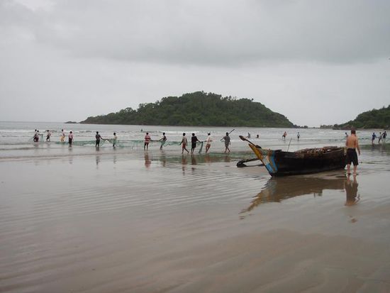 Taeglich fischten die Einheimischen mit einem riesigen Netz den Strand ab. Das Einholen beschaeftigt eine ganze Mannschaft fuer etwa 1,5 Stunden. Aber es war trotzdem interessant zuzuschauen.