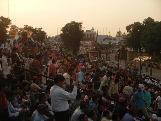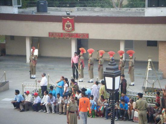Wie immer folgte der Abschied nach dem man sich gerade ein wenig besser kannte und unsere Reise fuehte uns weiter an die Grenze von Pakistan, an der wir die taeglich stattfindende Schliessungszeremonie mit feierten. Es geht darum die Freundschaft der beiden Laender zu waren.