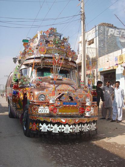 Wir schlugen den Rueckweg nach Islamabad ein und trennten uns von Kari und Walther. Doch in einigen Tagen werden wis uns wieder dort treffen. Von unseren Visen gab es leider nichts neues, ausser schlechte Nachrichten von anderen Reisenden, die auch wochenlang warteten. Wieder verbrachten wir ein paar Tage auf dem Campingplatz um uns danach nach Quetta aufzumachen in der Hoffnung, das bis dahin unser Visa abholbereit ist. Auf dem Weg dorthin stiessen wir auf Kamele und ein paar schoene Exemplare von Trucks, die in Pakistan zu tausenden vertreten sind. Ein paar hatten sogar Duesenjets