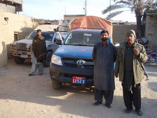 Auf einer Stecke von 200 km haben wir sogar unseren ersten Begleitschutz bekommen. Die Fahrzeuge wechselten ca. alle 50 km und manchmal stieg sogar ein Soldat mit in unser Auto ein. Von der Gefahr spuerten wir ueberhaupt gar nichts, alle Menschen waren ueberaus freundlich und wir fuehlten uns sicher. Doch wir denken, dass die Polizei nicht zum Spass so einen Wirbel macht. Selbst einige Zivilisten teilten uns in Gespraechen mit das diese Gegend ( Dera Ghazi-Khan nach Loralai) gefaehrlich sei.