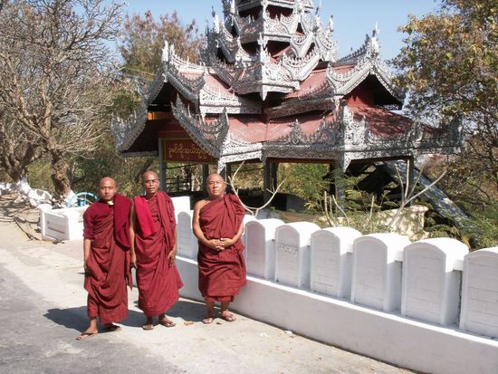 Und gleich ging es zusammen mit Corinne aus Frankreich und Robert aus Tschechien, die ich beim Fruehstueck im Quartier kennen gelernt habe, auf Entdeckungsreise in die alten Koenigsstaedte Sagaing, Inwa und Amarapura.