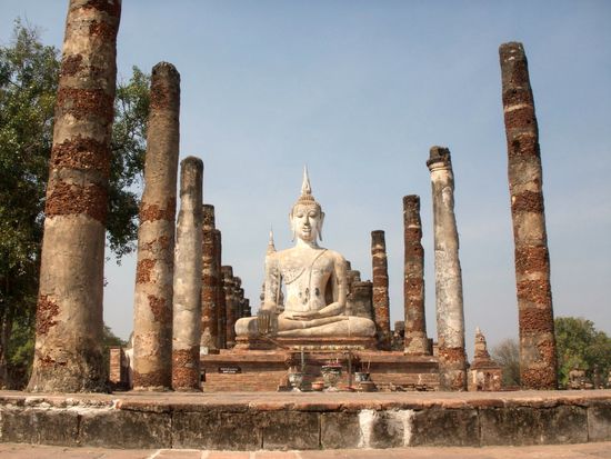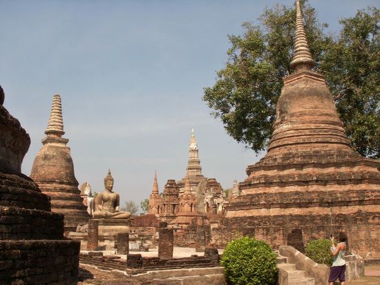 Sukhothai, auch mal Thailands Hauptstadt gewesen, hat meiner Ansicht nach die interessanteren Tempelanlagen als Ayuthaya. Vor allem sind relativ viele Steine auf dem Stein geblieben, wodurch es so einiges zu sehen gibt.