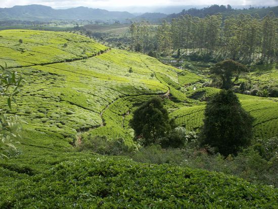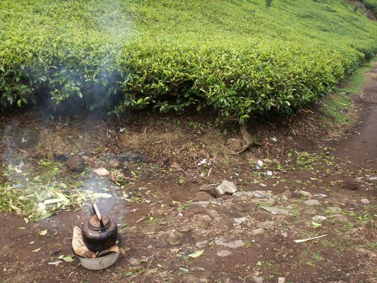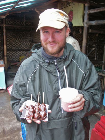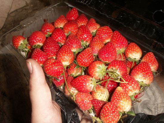 Weiter gehts durch gruene Teeplantagen, wo der Teekessel singt ... auf einen Schwung ins Erdbeerland. Da wird erst einmal festlich geschmaust: Erdbeeren mit Schoki, Erdbeeren als Saft, Erdbeeren mit Erde. Fuehl mich schon als grosser Erdbaer