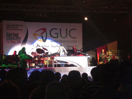 Der Mai war der Monat der Konzerte und Festivals: am 14.5. fand auch eines an der GUC statt - der Deutschen Universität in Kairo. Da mein Arbeitgeber Mitorganisator des Konzertes war, konnte ich einige Eintrittskarten ergattern und so fuhren Moussa, Katie (Schwedin), Anne (meine Mitbewohnerin), Ali und ich hin.