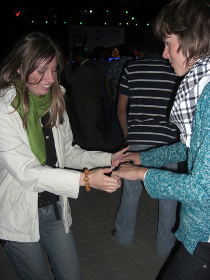 Im Anschluß daran spielten noch die deutsche Band "Nomad Sound System" und *die* Band aus und in Kairo: "Wust El Balad" (was übersetzt downtown heißt, bzw. Innenstadt). Einziges Manko war, dass es mit dem Untergehen der Sonne ziemlich frisch wurde...aber Anne und Katie wussten sich zu helfen und tanzten sich wieder warm