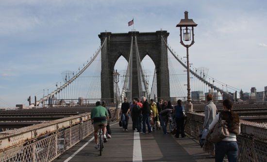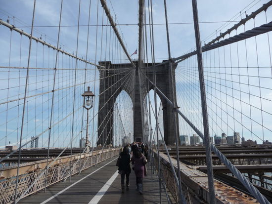 An den folgenden Tagen und Abenden war echtes Siteseeing angesagt. Wir liefen uns im wahrsten Sinne des Wortes die Füße platt. Jeder klagte über Blasen und Rückenschmerzen. Aber gesehen haben wir viel. Wir waren bei Nacht am Broadway und am Time Square. Wir spazierten im Central Park. Wir flanierten auf der 5th Avenue und drückten uns die Nase an den noblen Läden platt, während dessen am Columbusday auf der 5th eine Parade zum Feiertag stattfand. Wir besuchten den Ground Zero, wir fuhren mit der Staten Island Ferry (eine Personenfähre, kostenlose Fahrt nach Staten Island) an der Freiheitsstatue vorbei und wir fotografierten die Wallstreet. Wir liefen bis zur Mitte der Brooklynbridge und holten uns frittierte Nudeln und Frühlingsrollen in Chinatown als Stärkung des Tages. Und das schönste war der Sonnenuntergang auf dem Rockefeller Building mit der perfekten Aussicht auf den Central Park, das Empire und Downtown. Der Eintritt kostet 14US$ ohne Wartezeit und Anstehen! Und last but not least machten wir am letzten Vormittag einen Ausflug nach Brooklyn, wo wir gleich merkten, das wir nun in einem Vorort New Yorks sind, wo Menschen aus aller Welt wohnen, außerhalb der teuren New Yorker Innenstadt.