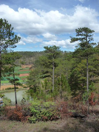 Etwa 300 km weiter nordoestlich von Saigon liegt Dalat. Bereits als wir noch im Bus sassen, fingen wir an zu staunen. Der Reisefuehrer hatte uns nicht zuviel versprochen. Um uns herum waren Berge, Pinien, Kiefern, Obstplantagen, Blumen, Seen und eine schoene kleine Stadt mitten an einem Huegel. In der Stadt gab es nette Restaurants, Cafes und Ateliers. Selbst das Klima war schlagartig ein voellig anderes, wie noch in Saigon. Es war, wie an einem schoenen Fruehlingstag, an dem man Abends noch eine Jacke braucht. Wir fuehlten uns, wie nach Europa versetzt. Es fuehlte sich an, als waeren wir im Elsass. Auf dem Markt gab es Spargel, Artischocken und Erdbeeren. Das Angebot an Blumen war unueberschaubar. Alles war bunt, freundlich und lebendig und so wenig asiatisch vietnamesisch.