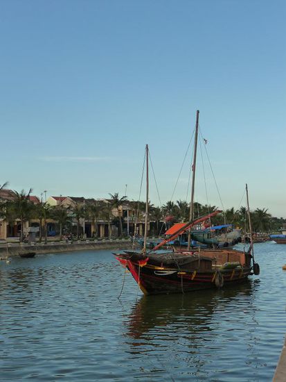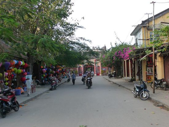 Hoi An liegt in etwa auf halber Strecke zwischen Saigon und Hanoi. Die Stadt war im 16. bis zum 18. Jh. eine der fuehrenden Haefen Suedostasiens. Chinesische und japanische Kaufleute liessen sich nieder und gruendeten Handelsniederlassungen. Es reihen sich Tempel, alte Handelshaeuser und Pagoden aneinander. Es wirkt wie eine kuenstliche historische Stadt.