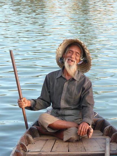 Heute ist Hoi An eine Touristendestination. Es reihen sich Boutiquen, Souvenirlaeden, Schneidern und Restaurants in Massen aneinander. Alte Frauen und Maenner stellen sich posierlich in deinen Weg und lassen sich fotografieren.