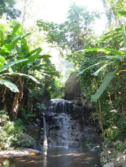 Also wir unternahmen wirklich einen Ein-Tagesausflug und wanderten durch den Dschungel. Zu erst durften wir auf einer Orchideen-Farm Schmetterlinge beobachten, die nicht vorhanden waren. Danach versuchte sich Pascal als Kutscher eines Ochsenkarren. Ich war froh, dass der eigentliche Kutscher immer bei uns blieb. Und dann wanderten wir endlich. Nagan unser Fuehrer war wirklich lieb und erklaerte uns viel ueber die Pflanzen. So wissen wir nun, wie Erdnuesse wachsen und was man aus Bananenbaeumen alles machen kann. Pascal sprang sogar in einen 15 Grad kalten Wasserfall...brrrr...mir war das nichts. Zum Schluss kamen wir an eine Fledermaushoehle ohne Fledermaeuse. Die kleinen Batmans haben wohl die Flucht vor Touris ergriffen. Kein Wunder, wenn dreimal am Tag einer mit einer stinkig, qualmenden Fackel durchs Schlafzimmer rennt.