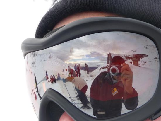 Als wir endlich oben ankamen und in den ersten Sessellift sassen, bemerkten wir, dass es hier keine Fussstuetzen gibt. Dort baumeln also die Beine sammt Ski oder Board an deine Fuessen und das geht auf die Dauer echt auf die Beinmuskulatur. Und der Lift an sich, war nicht schoen gepolstert sondern, glich eher einer Plastikparkbank. Ich hatte nach dem Tag keinen Muskelkater vom Skifahren sonder der olle unbequeme Lift verschaffte mit blaue Flecken an den Haxen, "noel".