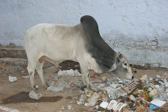 Auch das gehoert zu Pushkar. In den Nebengassen war es teilweise sehr schmutzig und Kuehe waren ueberall anzutreffen.