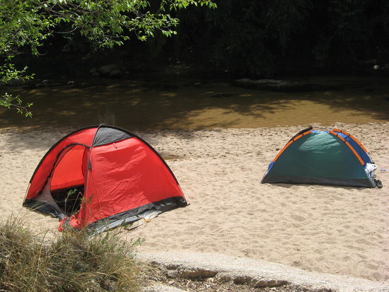In Mina Clavero (noch weiter suedwestlich) angekommen, waren wir ziemlich im Eimer und gingen erstmal was essen. Danach waren wir gestaerkt fuer die Campingplatzsuche. Leider ist aber noch Nebensaison und bis Dezember haben die meisten Campingplaetze geschlossen. Wir wir es auch einmal auf dem Jakobsweg letztes Jahr geschafft haben, klappte es auch diesmal: Ein Taxifahrer klapperte mit uns alle Moeglichkeiten ab und schliesslich brachte er uns an eine verborgene Stelle, wo die Polizei uns nicht sofort finden wuerde. Es war ein netter, kleiner Strand an einem Flussufer und dort schlugen wir unser Lager auf.