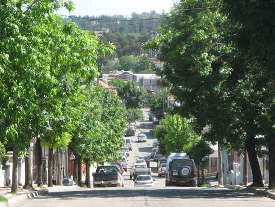 Am naechsten Tag musste wie immer Geld gespart werden. Wir wollten fuer die kommende Nacht nichts bezahlen und versuchten Taxigeld fuer den Rueckweg in den Ort zu sparen, indem wir zu Fuss gingen. Nach der Haelfte der Strecke wurden wir doch mitgenommen. Wir konnten fuer den Vormittag unser Gepaeck in der Touristeninfo lassen und liefen noch ein wenig ueber die huegeligen Strassen, bevor wir weiter nach La Cumbre fuhren. Fast NOCH ruhiger kam mir dieser Ort vor! Aber vielleicht lag es auch an der Siesta, zu der wir ankamen. Auch hier konnten wir unser Gepaeck wieder in Touri-Info lassen, das scheint hier eine ganz gute Idee zu sein. Dann schoben wir uns durch die Mittagshitze durch den Ort, der ausserhalb des Zentrums aus riesigen Villen besteht, in denen man zu hohen Preisen uebernachten kann. Unser Ziel war am Ortsende der Camino de Artesanos, aber dass dieser ein Wanderweg war, oder besser mit dem Auto gemacht wurde, ahnten wir vorher nicht. Es war also zu weit und zu heiss, um den Weg noch anzufangen, als wir endlich angekommen waren. Na ja, es war sehr aergerlich, aber immerhin hatten wir im "Casita de Chocolate" angehalten, wo uns ein netter, ernster Familienvater seine selbstgemachten Produkte vorfuhrte. Er empfahl uns ausserdem, bei der Feuerwehr zu fragen, ob wir dort uebernachten koennten, oder unser Zelt dort aufstellen duerften. Vom draussen Uebernachten riet er uns ab, wie eigentlich alle Argentinier, mit denen man so redet. Er meinte, eher sollten wir zurueckkommen und unser Zelt in seinen Garten stellen.