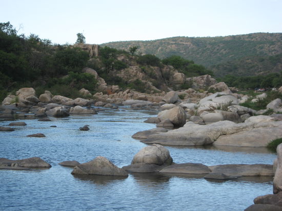 Als sie mit den Jungs, die auch in der Kooperative arbeiten, kamen, machten wir uns auf den Weg zum Rio Quilpo, ca. 4 km vom Ort entfernt. Jemand brachte uns mit seinem Pickup hin und versprach uns, uns spaeter wieder abzuholen. Die Fahrt ging holter-die-polter durch die steppenartige Umgebung, die mit eindrucksvollen Kakteen uebersaeht ist.