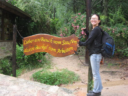 Fangen wir aber mit unserem halben Wochenendtrip letzte Woche an: Ja, das Wetter sah sicher nicht so gut aus, aber wir dachten uns, dass es in La Cumbrecita doch sicherlich anders aussah. Fehlgeschlagen. Erstmal fanden wir durch Zufall raus, dass wir umsteigen mussten und als es dann weiterging, die unbefestigte Strasse hinunter, durch die Sierras, die von einzelnen kleinen Waeldern unterbrochen sind, begann es zu regnen und es hoerte erstmal nicht mehr auf. Wir kamen an und rannten mit unseren alles andere als regenfesten Klamotten ueber Stock und Stein sowie ueber groesser werdende Baeche auf den Wegen - auf der Suche nach einem Unterschlupf. Diesen fanden wir schliesslich im Restaurant "Die Freuden", wo es sogar Gulasch gab und eine Heizung, auf der ich meine Socken und Schuhe trocknen konnte. Leider gingen meine Socken bei dem relativ offenen Feuer fast in Flammen auf und es stank ziemlich zum Essen.