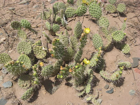 Anschliessend machten wir eine Runde im (eher toten) Dorf und gingen hinunter an den Fluss, wo sich saemtliche "Catamarcaner" () tummelten, Bier tranken, Asados machten und sich im Fluss abkuehlten. Eine mit der Hand zusammen gezimmerte, wackelige Bruecke fuehrte uns rueber auf die andere Seite, wo wir uns eine Weile durch die stachelige, steppenartige, faszinierende Vegetation schlugen. Es gibt ja so viele beeindruckende Arten von Kakteen!!