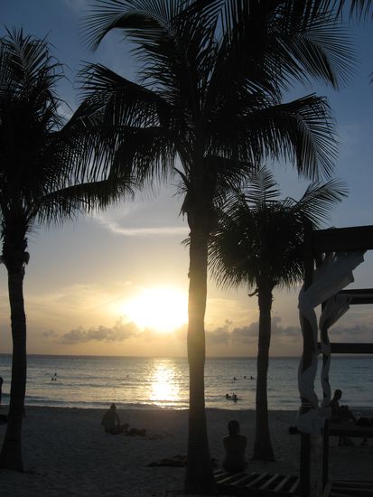 Gestern den Tag verbrachten wir am Strand. Ehrlich gesagt kann man auch nicht viel anderes machen, weil es hier so heiss ist, dass man auch am Strand alle fuenf Minuten ins Wasser muss. Aber wir haben es uns ein wenig gut gehen lassen dort und mit Chris, Chris und Leon Piña Coladas im Meer getrunken.