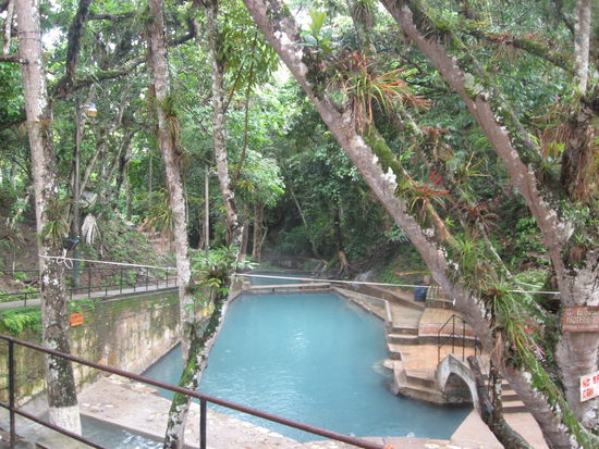 Nachdem wir ein wenig durch den Ort gelaufen bzw. ueber Pfuetzen springend gerutscht waren, nahmen wir eins der kleinen, dreiraedrigen Mototaxis, das uns etwas ausserhalb zu einer heissen Quelle brachte, die in verschiedene Becken geleitet wurde. Es war TOLL! Bei dem Regen und dem weitestgehend haesslichen Wetter und den kalten Duschen ueberall in natuerlich heissem Wasser baden! Hmmmm ....