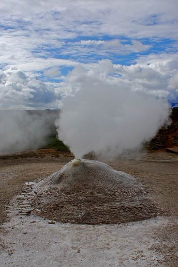 Über Hveravelier (Ebene der heißen Quellen) eines der Geothermalgebiete Islands - geht es nach Süden.