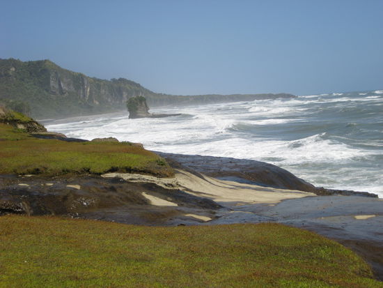 von Nelson gings dann weiter nach Greymouth in den wohl verschlafensten Ort in Neuseeland. Unterwegs machten wir Halt bei den Pancake Rocks - sehr schoen!