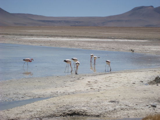 Nach 3 Naechten San Pedro de Atacama gingen wir weiter nach Bolivien, was eigentlich gar nicht auf meinem Reiseprogramm stand. Bolivien wollte ich grundsaetzlich schon sehen, dachte aber, dass es zu gefaehrlich ist, als Frau alleine. Wir buchten eine Tour bei Colque Tours.