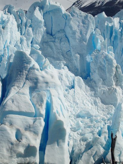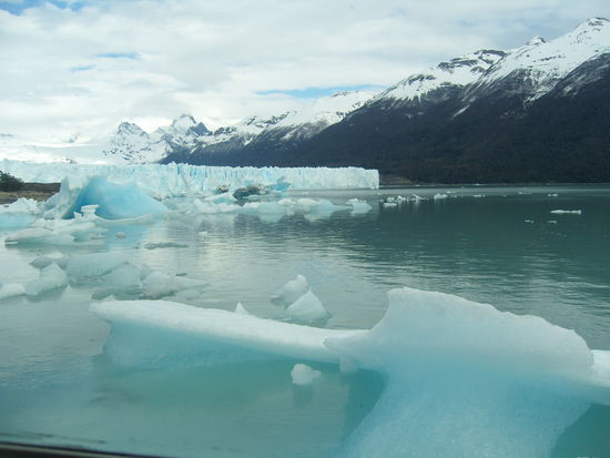 Sonntagmorgen um 9 Uhr ging es endlich mit dem Bus los zum Nationalpark "Los glaciares". Als Erstes sind wir mit einem kleinen Schiff bis zu 300m an die Gletscherwand des Perito Morenos herangefahren: WOW ! Mehr kann man dazu wirklich nicht sagen. Man muss dieses Naturphaenomen mal wieder mit eigenen Augen gesehen haben, um unsere fehlenden Worte verstehen zu koennen.