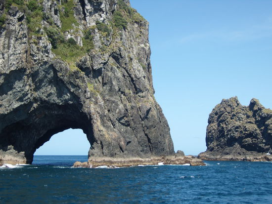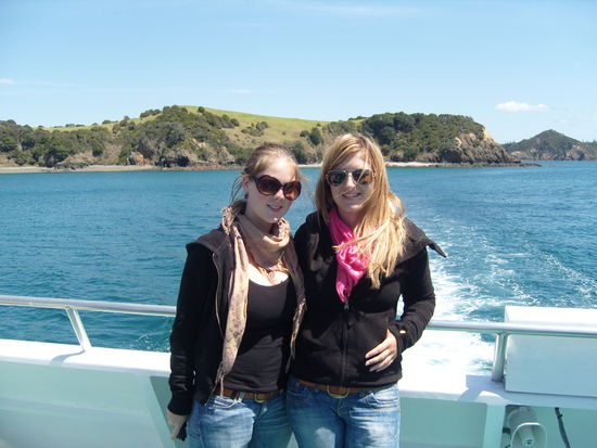 Unser erster Tag mit Kiwi Experience : um 7 Uhr morgens ging es los Richtung Norden. Zuerst jedoch haben wir einen kleinen Abstecher auf einen der vielen vulkanischen Berge (Mount Eden) von Auckland gemacht, von wo aus wir einen tollen Ausblick auf die Stadt genießen konnten. Während der Busfahrt bekommen wir unseren ersten Eindruck von der neuseeländischen Landschaft: saftig grüne Hügel mit Schafen, die es hier zur Genüge gibt. Nach 3 ½ Stunden kommen wir in Pahia an und stellen hier zum ersten Mal fest, wie schnell sich das Wetter in diesem Land ändern kann: während es in Auckland noch verregnet und kalt war, erwartet uns in Pahia ein blauer Himmel und Sonnenschein. Viele Einheimische kommen in diesen idyllischen Badeort zum Urlaub machen und relaxen. Wir entscheiden uns am Nachmittag eine Schiffstour zu machen, die uns um die vielen Buchten und zum "Hole in the Rock" führt. Eigentlich sollte man auf dieser Fahrt auch viele Delfine sehen können, doch aus irgendeinem Grund wollten die Tiere uns den Spass verderben. Letztendlich hatten wir jedoch die Chance einen kleinen alleingelassenen Delfin beobachten zu können.