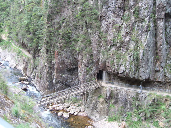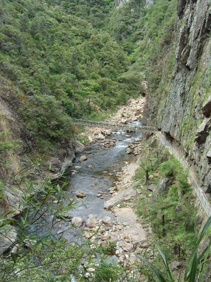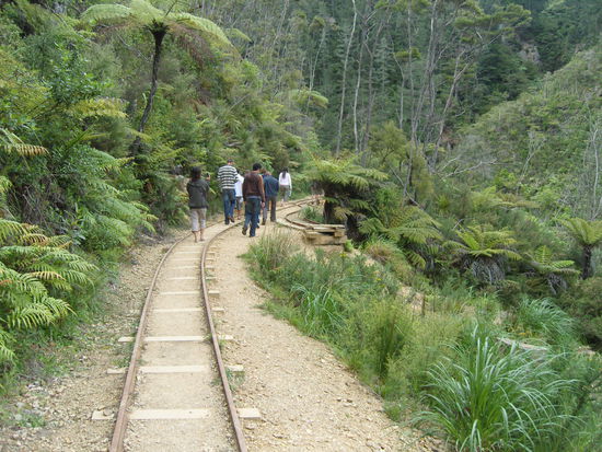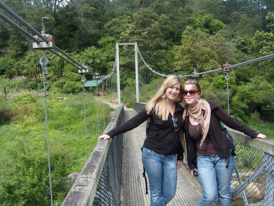 Am frühen Morgen geht's für uns weiter Richtung Rotorua. Den ersten Stop machen wir an einer alten Goldmine: aussteigen, Foto machen, einsteigen, und weiter... beim Karangahake Scenic Reserve machen wir einen Spaziergang über wackelige Hängebrücken und wandern über die Eisenbahngleise durch dunkle Tunnel, um einen wunderschönen Ausblick in eine Schlucht zu bekommen. Dort treffen wir auch eine Gruppe Deutscher, die an einem Austauschprogramm für "Erwachsene" teilnehmen.