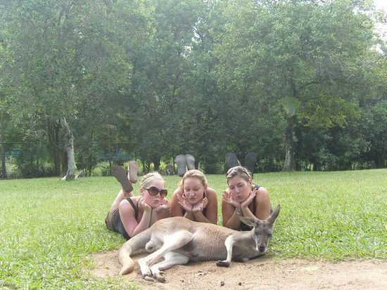 Bevor wir jedoch am heutigen Ziel ankommen, machen wir noch einen Abstecher in den bekannten "Australia Zoo" von Steve Irwin, wo wir dann den ganzen Tag verbringen. Es war wirklich ein super erlebnisreicher Tag in dem tollen Zoo, wo wir u.a. eine Krokodilshow sehen konnten, Kaengurus, Koalas und Schlangen streicheln konnten, Elefanten selbst gefuettert haben und vieles mehr...