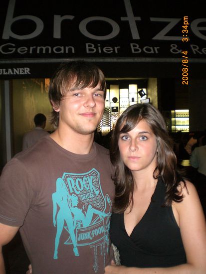 Carina und Ich vor dem deutschen Restaurant namens "Brotzeit"