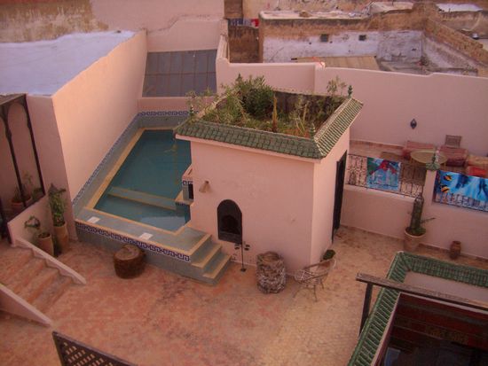 eigentlich gibt es nicht viel zu berichten. Wir sind jetzt drei Tage in Meknes gewesen, haben hier eine saugeile Unterkunft gefunden, liegen faul am Pool und lesen ein Buch nach dem anderen. Echt nett hier. Abends gehts dann in die Medina und auf die unzaehligen Maerkte und morgen bereits in die letzte Stadt nach Fes. Angeblich ja der Traum Marokkos. Mal sehen...