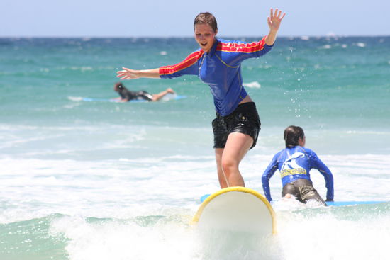 sind momentan in Surfers Paradise - und der Name ist Programm - wir hatten heute unsere erste Surflesson! Oh gott ist das anstrengend, ey! Aber es hat verdammt viel Spass gemacht, auch wenn ich nicht eine Minute laenger als 2 Stunden ausgehalten haette Wir haben den halben Ozean verschluckt!! Der Coach war mal Worldchampion, man hat auf dem Flyer ein paar Bilder gesehen... Wow! Naja, und wir haben jetzt ne Urkunde mit seinem Namen drauf...