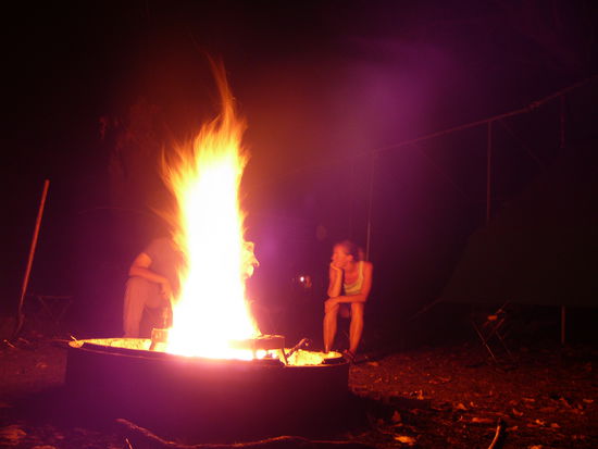 Nach dem Kochen wurde es wieder Zeit um in den Swag zu schlupfen. Nachdem wir zuvor eine nicht grad kleine Spinne gesehen hatten kaempfte Nina erstmal mit allem was rumkroch um sich ein sauberes Nachtlager zu schaffen Doch als sie erstmal lag, schlief sie auch schon. Ganz im Gegenteil zu mir. Ueberall huepfte was anderes rum. Raschelte hier und da - ich konnte einfach nicht schlafen. Dann gings weiter das dauernd was auf meinen Swag fiel viell. auch huepfte(aehnlich wie wenn ein Apfel vom Baum faellt)und wieder runter rollte. Ich glaub da hatte ein Tierchen richtig Spass und ich hab fast die Krise bekommen und somit nicht wirklich viel geschlafen. Um 6Uhr war auch schon wieder die Nacht vorbei.