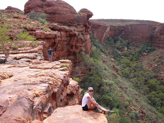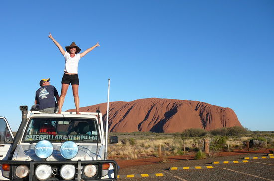 Endlich...wir starteten am Mittwoch Mittag! Ohne grosse Pause kamen wir nach 11 Stunden Fahrt in Alice Springs an. Wir quartierten uns bei Richard's Schwester ein! Am naechsten Tag stand ein bisschen shopping auf dem Programm. Man haben wir uns gefreut wie Schnitzel endlich mal wieder ein paar mehr Geschaefte wie nur eines in Katherine durchstoebern zu koennen. Ja und ich bin auch pfuendig geworden und habe mir ein paar Christmaspresents gekauft - die Westkueste kann also kommen Anschliessend ging es weiter zu den Kings Canyon's. Auch hierfuer legten wir ca. 300 km zurueck. Wir kamen puenktlich zum Sonnenuntergang an und konnten die Rock's noch im gluehendem rot sehen. Danach schlugen wir unser Nachtlager auf - das Nachtlager hiess Wiese Nach einem lecker Barbeque, 1, 2 Cidern und ein bissle gequatsche krochen wir in unsere Swags - doch diesmal waren diese komplett offen - sozusagen wie ein Schlafsack! Huha...wieder mal campen mit all den Tierchen. Doch wir haben die Nacht mit 100 Mal aufwachen ueberlebt. Hatten halt wieder ein paar mehr Moskitostiche - aber gut - is schon fast normal. Genauso wie die nervigen Fliegen, die einem in die Ohren, Nase, Mund und Augen kriechen...Wie aggresiv kann eine Fliege sein? Nach dem Fruehstueck stand ein Wandertoeurchen an. Auf on the rock's. Beim Anstieg dachte ich wieder nur - was mache ich hier eigentlich? Aber als wir erstmal oben waren kam unsere Energie zurueck und wir sangen den ganzen Weg irgendwelche komischen Lieder wie z.b. Benjamin Bluemchen Ich glaub Richard hat uns fuer mehr wie die crazy girls erklaert, vorallem weil einer besser wie der andere singen kann Schoe war's! Danach starteten wir in Richtung Wahrzeichen Australien's zum Ayers Rock. Auch hier kamen wir nach ca. 3 Stunden an und der riessen Brocken stand vor uns! Wiedermal haben wir geklotzt wie die Eichhoernchen!!! Einfach gigantisch!!! Ich glaub wir standen 8 Stunden davor und haben 100 Spassbilder gemacht. Eigentlich dachte ich, man muss ihn nicht unbedingt sehen - doch das waer deffinitiv ein Fehler gewesen!