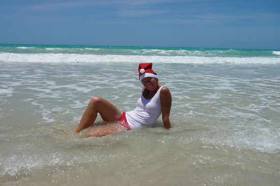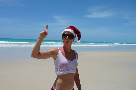 Wir werden heute an einem schoenen Strand in Exmouth unseren Weihnachtstag verbringen. Es gibt sogar lecker selbstgebackene Plaetzchen und natuerlich einen Gluehwein *hicks*