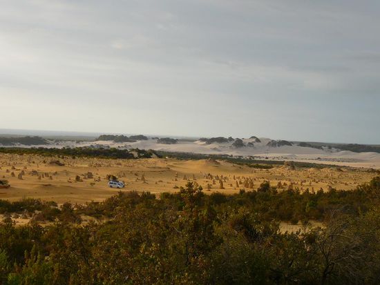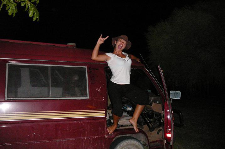 Am 26.01. hiess es auch in Carnarvon "Abschied nehmen". Carmen, Nina und ich starteten in Richtung Sueden. Auf dem Weg von Monkey Mia nach Kalbarri kamen wir in ein riessen Regenloch und stoppten auf einem Parkplatz am Highway und so klein ist dieser Country - wir trafen Pit von unserer Farm. Auch er musste stoppen und konnte nicht weiterfahren. Nach langem hin und her beschlossen wir eine Nacht wild zu campen. Mussten uns ja nicht wirklich Sorgen machen, da Pit und Tschesta (Hund) dabei waren. Das war wieder mal einer dieser ungeplanten Abende. Mal was Anderes: auf einem Parkplatz zu stehen, ein zwei bierchen zu schnalzen und ein riessen barbeque zu veranstalten. Gleich nach Sonnenaufgang ging unsere Fahrt weiter.