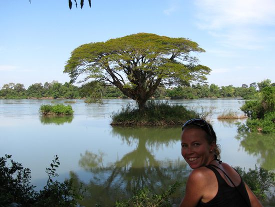 Am naechsten Morgen starteten wir wieder mal mit einem grossen Vorhaben. Mit dem Bus von Luang Prabang nach Vang Vieng weiter nach Vientiane - in den Nachtbus und auf nach Pakse und weil 22 Std. travel noch nicht genug waren beschlossen wir spontan, alles rund um Pakse nen miss zu geben und weiter auf die 4000 Islands zu fahren. So sassen wir nochmal gute 21/2 Std. im Bus. Nun war nur noch eine kurze Ueberfahrt mit dem Boot zu bewaeltigen und wir erreichten Don Khong. Die Landschaft hier war im Vergleich zum Norden sehr flach. Wir erkundeten das Inselchen mit dem Roller - ganz soviel gab es nicht zu sehen, aber ich liebe es durch die vertraeumten Doerfchen zu tuckern.