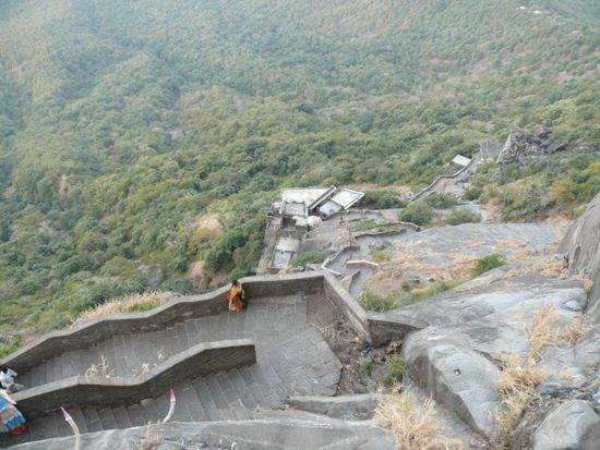 Für die Leute hier ist es ein Ereignis, uns zu begegnen, denn viele Ausländer gibt es hier nicht. Sie sind offen, neugierig, staunen einem an, können aber leider kein Englisch!!! Da mich der Handywahn bei den Indern schrecklich nervt, kamen dann auch lustige Gespräche in Gang. Einige junge Männer und Mädels zogen in Gruppen die 4000 Stufen mit uns hoch. Wenn sie pausierten, telefonierten sie oder (der Horror schlechthin) es erschallten Handylautsprecher mit Musik - und das in dieser wunderbaren Stille und Atmosphäre!