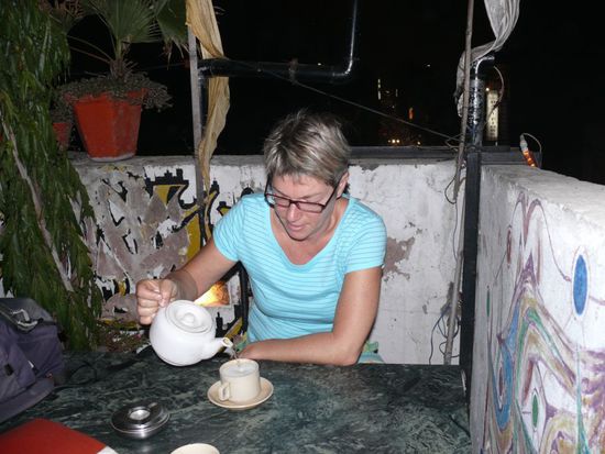 Endlich wieder am Main Basar angekommen, stiegen wir aus und rollerten los. Da es noch so früh war, war das auch kein Problem - der Verkehr wird erst ab 9 Uhr flächendeckend und ohrenbetäubend. Ganz schnell entdeckten wir unsere Pension, 10 Euro, nahmen ein Zimmer mit Bad, fertig.