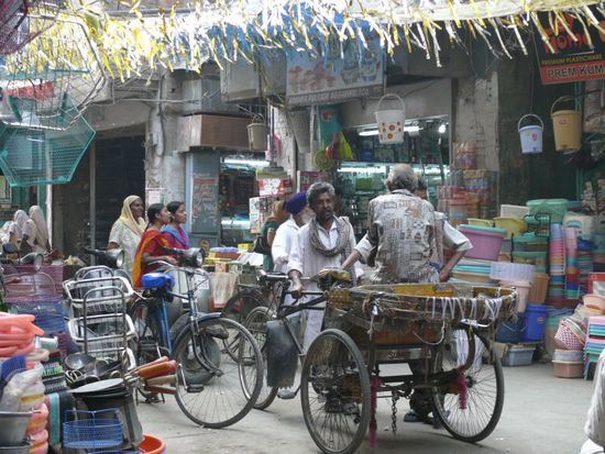 Fuhren mit einem alten Mann und seiner Fahrradrikshaw zu einem Guesthouse am Goldenen Tempel, aber die interne Baustelle des Hauses schreckte uns schon ab, denn Lärm gibt es auf den Gassen schon genug - das laute, unaufhörliche Hupen der Mopeds ist fast nicht auszuhalten.