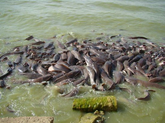 Mit dem von unserem Fahrer empfohlenen lokalen Stadtführer besichtigten wir den heiligen See, in welchem unzählige dicke Katzenfische gedeihen, weil sie ungeniessbar sind aber reichlich gefüttert werden um den Touristen zu zeigen wie sie springen können.